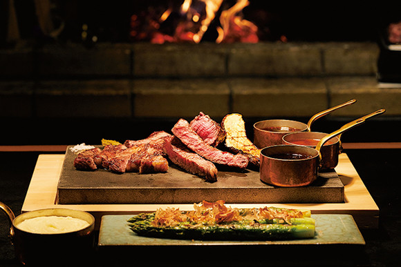 薪でグリルした30日間熟成肉と足柄牛の4部位を食べ比べ。「リバーサイドビーフプレート」2名分¥23,100