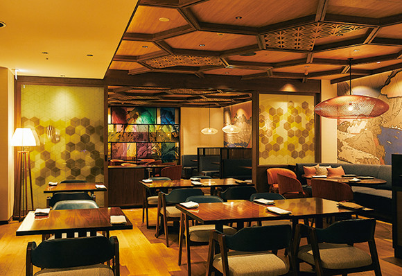 和洋折衷な空間のリバーサイドキッチン&バー。色鮮やかなオリジナルカクテルもぜひ。