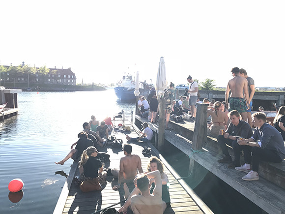 とにかく短い夏を精一杯楽しむべく。少しでも長い時間太陽と戯れようと、みんな一斉に表に繰り出す。写真は、コペンハーゲン市内を走る運河沿いの桟橋で日光浴を楽しむ人々。photo:HISASHI IKAI
