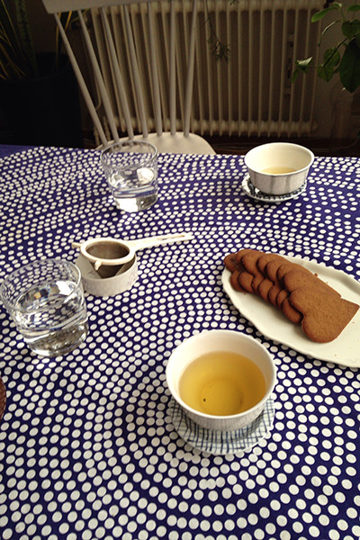 スウェーデンの「フィーカ」の様子。テーブルに並ぶのはとてもシンプルなメニューで、コーヒー&クッキーというのが基本だ。食べものや飲み物の内容よりも、おしゃべりをするというのが主な目的だとか。photo:HISASHI IKAI