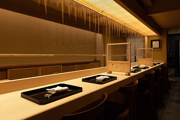 カウンター12席に加えて、個室カウンター8席も。新型コロナウイルス感染防止対策が取られた店内も、空間になじむようにとの工夫と心遣いが見てとれる。