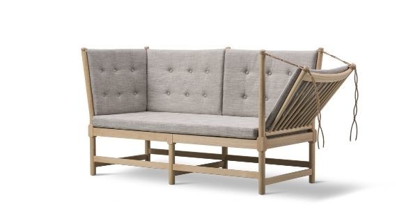 デンマークを代表する家具デザイナーによる、戦後の豊かな暮らしへつながるもの作りへの情熱が詰まった名作ソファ。「軽快で包み込まれるようなゆったり設計で、6段階の角度が調節ができるアームを倒せばデイベッドとして使える点も魅力です」