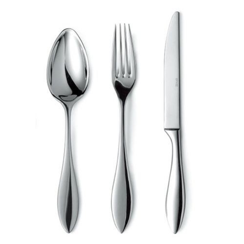 ゲンセは、スウェーデンの王室御用達カトラリーブランド。「人が使うことで完成するという、優美で滑らかなフォルム。少し大きく感じますが、高いクオリティとバランスのとれたデザインは、食べ物を口に運ぶ所作まで美しく見せてくれます」。世界中の博物館に作品が所蔵される女性デザイナーの作品。