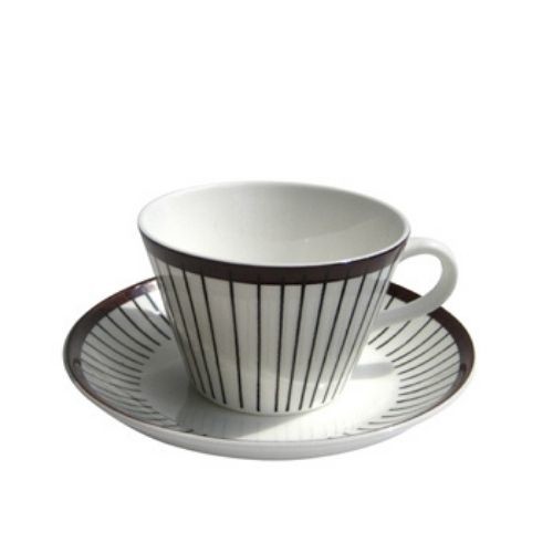 北欧の陶磁器ブランドのなかでも根強いファンが多いスウェーデンのグスタフスベリ社で、アートディレクターとして活躍したリンドベリの名作シリーズ。「シックで洗練された雰囲気ですが、よく見ると味わい深い不均一なラインに心がゆるみます。ホッとひと息つきたいコーヒータイムに穏やかな時間を運んでくれそう」
