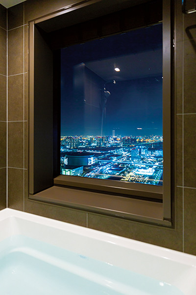 36階の最上階には、宿泊者専用の露天風呂もある大浴場が。朝も夜も入りたい! 女湯にはパウダールームも完備。