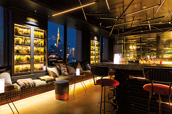 最上階にあるザ ライブリー バーは、東京タワーを望むテラス席があり、近所の人たちも立ち寄る、隠れ家的存在。DJが入るイベントも行う。