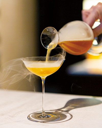 ウィスキーカクテルのような「ほうじ茶と林檎の燻製モクテル」¥1,100