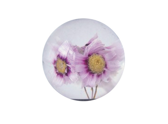968年に誕生した、ハフォドグレンジ社のペ ーパーウェイト。ポリエステル樹脂に植物を閉じ込めた佇まいは、まるでアートピースのように美しい。ペーパーウェイト(Φ6.4cm)¥6,380/プレイマウンテン