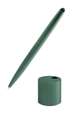 スマートフォンやタブレットを操作できるタッチペンとボールペンをドッキング。スタンドと一体化した、アルミニウム合金によるシンプルなデザインは、置く場所も選ばない。レクソンのペン ¥4,950/モマ デザインストア 表参道