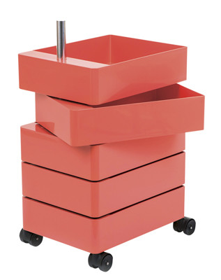 マジスの360°コンテナは、軸を中心に引き出しが回転することでものの出し入れをスムーズにした名作。5段タイプは、テーブルやデスクの下にちょうど収まるサイズ感。コンテナ(H72×W35×D42cm)¥82,500/マジス ジャパン