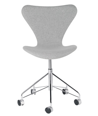 家具界のアイコンとして名高い セブンチェア。クッション性を持たせたフルパディング仕様の キャスター付きタイプを選べば、立派なワークチェアに。フリッツ・ハンセンのチェア(H90 ×W50×D52cm)¥154,000/フリッツ・ハンセン青山本店
