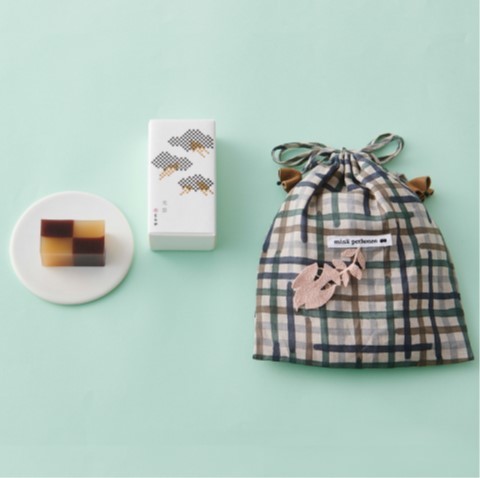 羊羹・巾着セット「とらや × ミナ ペルホネン 限定セット 光雲」¥7,700(三越伊勢丹限定)