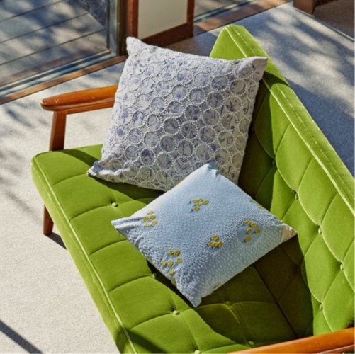 上奥:ミナ ペルホネン クッションカバー “レター オブ フラワー”×”タンバリン”¥20,900 上: ミナ ペルホネン クッションカバー”バレード”¥16,500(ともに三越伊勢丹限定発売)