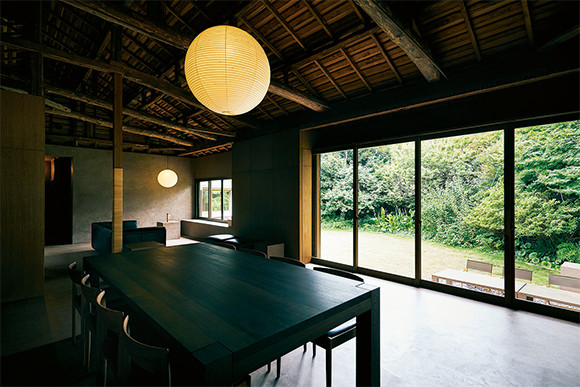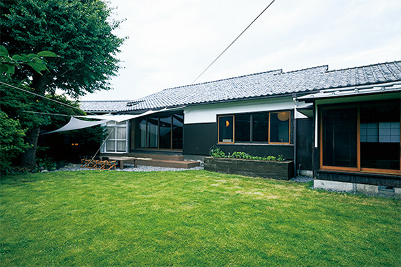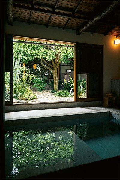 大きな庭のある築約100年の屋敷にひと目惚れしたというオーナー。スリランカのジェフリー・バワ建築から着想を得て改装した空間は、リビングは全面窓、茶色の壁やラタンを巻いた柱など、家の中にいても自然を感じられる造りに。イサム・ノグチの照明からキッチン雑貨のひとつひとつまで、スタイリスト田中美和子によるセレクトが光る。扉を開けると露天風になる、総タイル張りの風呂も贅沢だ。