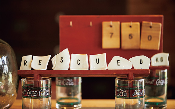 くるくるショップで新しい持ち主が見つかると、そのアイテムの重量を量り、何㎏ゴミが減らせたか(RESCUED)が毎月フロントで明示される。