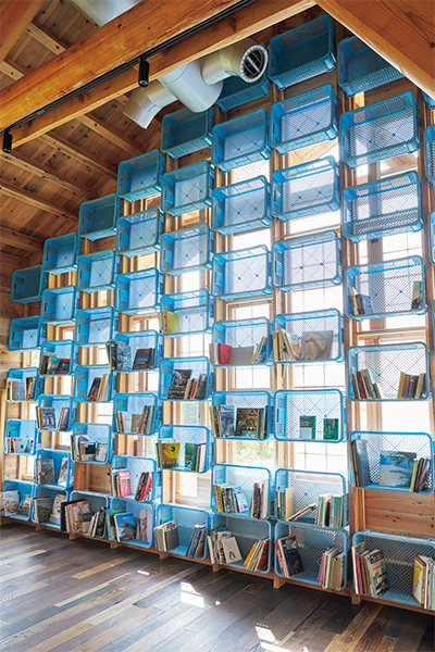 交流ホール兼ラーニングセンターと、会議や企業研修などを行うラボラトリーも併設。交流ホールではエコ関連の本や町民が寄贈した古本を自由に閲覧できる。選書はブックディレクターの幅 允孝(はば よしたか)が担当した。キッズスペースには、洗剤の詰め替えパウチからできたパステルカラーのブロックも置いている。