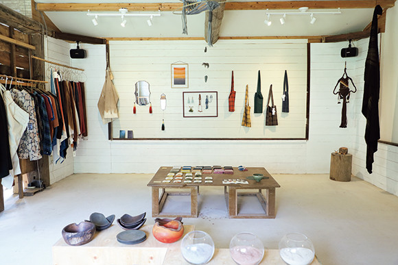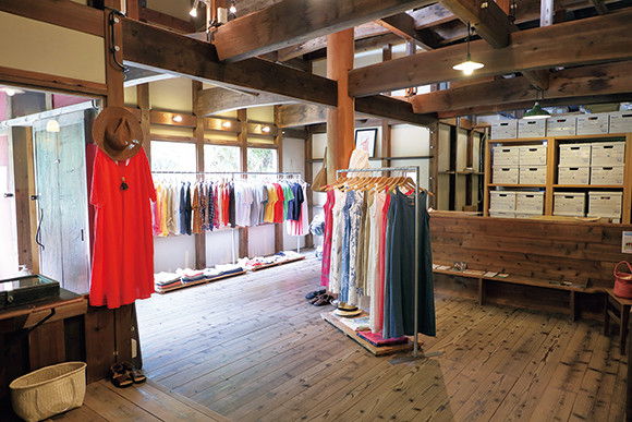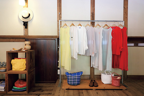 代官山G.O.D.や葉山サンシャインプラスクラウドに継いで、グローン・イン・ザ・サン3軒目の直営店として2009年にオープン。裏手に海が広がり庭にガジュマルがそびえる景観は、河瀨直美監督『2つ目の窓』の舞台にもなった。オリジナルからインポートまで幅広い品揃えで、地元の作家とコラボしたクラフトも展開する。鮮やかな色や肌触りのよい麻の服が多く、すぐに着替えて海辺を歩きたくなる。