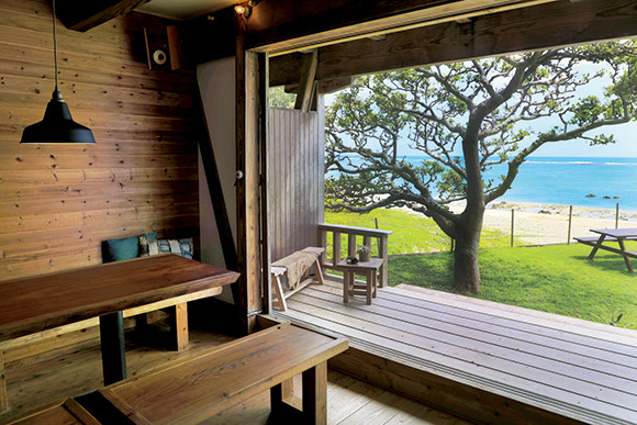 眼下に広がる海を眺めて、ユニークな島食材を味わう。