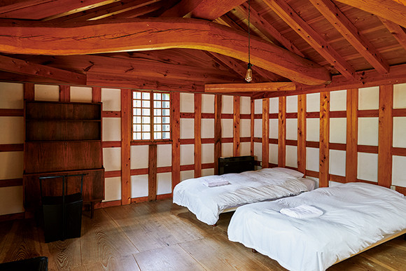 鞍掛山の麓の小さな町、滝ヶ原に魅せられたイデーの創始者が、古民家群を購入して菜園を作り、一棟貸し宿やカフェをスタート。2020年7月にはホステルやワインバーが登場。モダンに改装された古民家にはザハ・ハディッドやジャスパー・モリソンなど名だたるデザイナーの名作家具が配され、朝夕食には自家菜園の採れたて野菜を九谷焼のうつわで供する。長閑な里山の空気とデザイン性の高い空間の調和が心地よい。