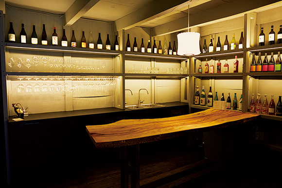 ホステルの離れにある2階建ての蔵が丸ごとワインバー。日本酒から国内外のワインまで豊富に取り揃える。