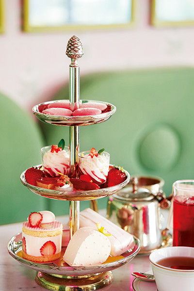 2019年末、ラデュレが日本の新たな店舗として選んだ場所は、洗練された住宅地でカルチャー発信地でもある松濤。定番のグリーンを基調にしながら、フェミニンな壁紙や照明、シックな床のタイルが街の雰囲気になじむ。ロマンティックな空間で供されるのは、季節で替わるアフタヌーンティー。「イチゴ尽くしアフタヌーンティー」は4月末まで。大人気のマカロンやイチゴを使ったセイボリー、ケーキに加え、好みで選べる紅茶で、夢のようなティータイムをどうぞ。
