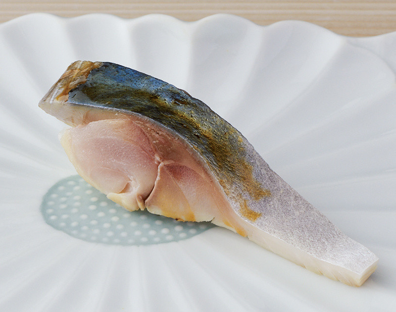 〆サバの握り。サバ本来の風味を残しつつ、〆加減もほどよくしっとりと仕上げた〆サバと、米の甘みを活かした鮨飯とが絶妙にマッチ。