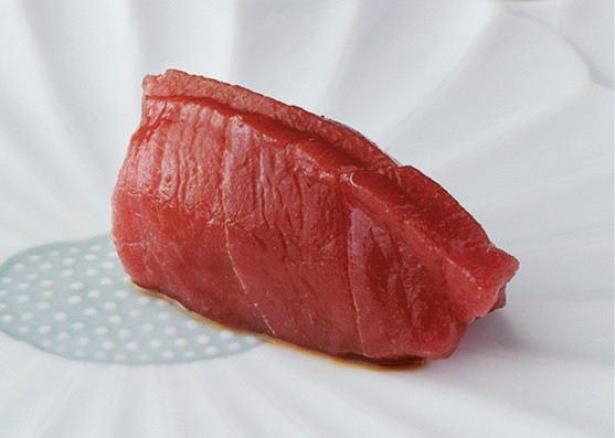 鉄分の味が強い赤身の真ん中の部分。㐂寿司では、赤身ひとつでさまざまな味が楽しめる。