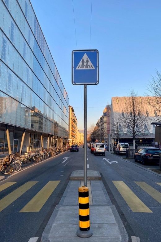 ジュネーブ市内の横断歩道に設置されている。隣国ドイツでも導入検討の声が上がっているが、現在はスイス国内でもジュネーブのみ。©️City of Geneva