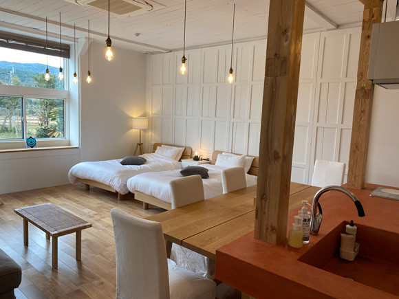 木造校舎をリノベーションした「スクールハウス」は、お風呂、トイレ、洗面所が共有の2室のみなので、家族で貸し切りも可能。