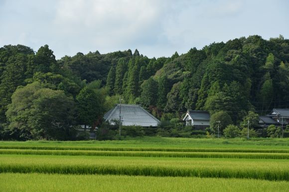 目の前は広大な田んぼ。築200年という大きな平屋の萱と、内装を建築家の中村好文が設計したという蔵が隣接している。