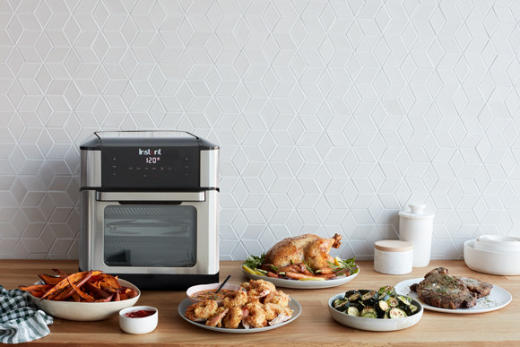 「インスタントヴォルテックスプロ10Qt」(W33.6×D33.6×H36.5 cm)¥33,000。タッチパネルなので、凹凸がなくフラットなキューブ型で無駄がない。トーストや発酵も可能。庫内のお手入れも拭き掃除で楽々!