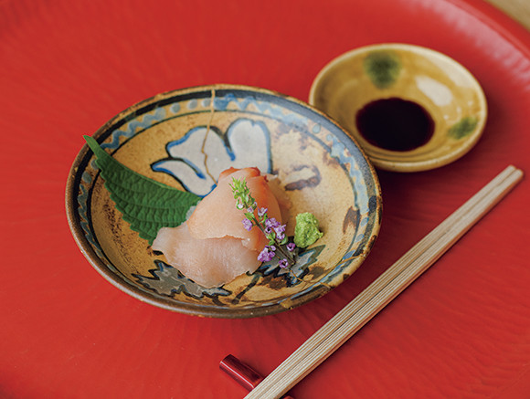 ここのシェフに就任するにあたり、滋賀県の名店、徳山鮓の店主・徳山浩明のもとで3カ月にわたって研修を行った。尊敬してやまない徳山大将からは、風土や食材への向き合い方をあらためて学ぶことができたという。