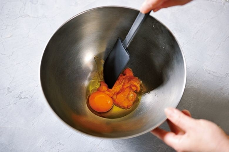 1.ウニの2/3量に卵黄、オリーブオイル、塩を加えて混ぜる。