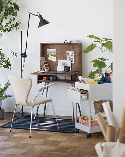 一人分のデスクワークの必要最低限を満たすコンパクトなサイズ感が魅力的。「ワーク・フロム・ホーム WB(ライティングビューロー)」(W65×D56.5×H115cm)¥94,600(税込)/藤森泰司アトリエ