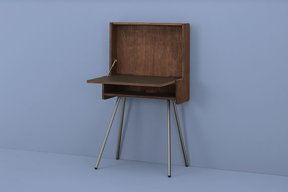 藤森自身は寝室で使うというライティングビューローは、天板を閉じてしまえば仕事道具が見えなくなるので仕事モードを簡単にオフへと切り替えられる仕様がうれしい。幅65cmとコンパクトで自宅のわずかなスペースに置くことができ、日本の住環境にぴったりだ。