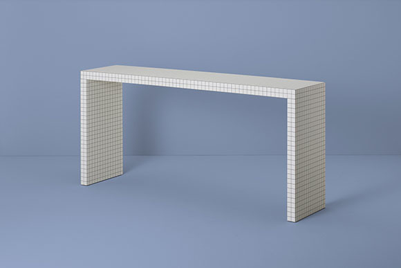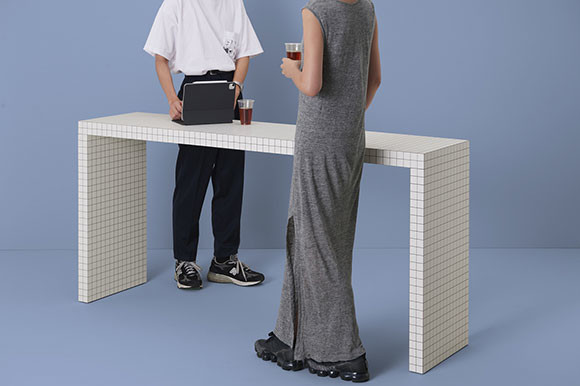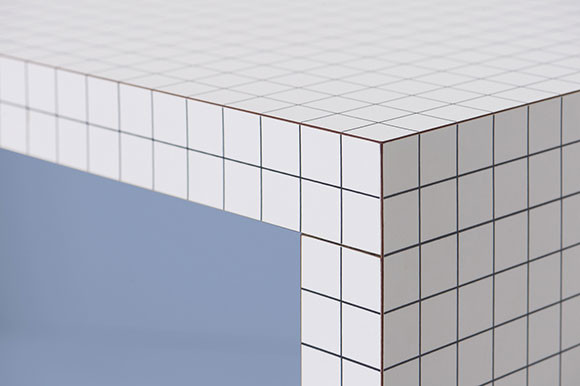 イタリアで結成されたデザイン集団、スーパースタジオが1970年に手がけた名作テーブル。遠目にはタイル張りのように見えるが、実際はハニカムコア合板に3cm四方の方眼模様のラミネートを加工したもの。そのため思いのほか軽く移動もしやすい。写真のモデルは細長で窓辺や壁付けにしてスツールや椅子を組み合わせれば、コーヒーショップのカウンター席のような仕事スペースが完成する。