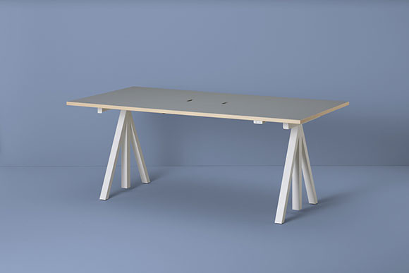 北欧らしいシンプルなデザインと色使い。ストリング ファニチャー「昇降式デスク ライトグレーリノリウム」(W180✕D90✕H71.5〜118.5cm)¥321,420(税込)/ザ・コンランショップ TEL:03-5322-6600
