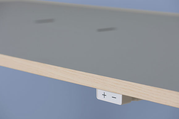 +ーどちらかのボタンを押し続けることで天板が昇降するシンプルな設計。