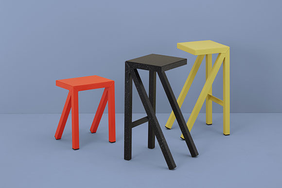 屋内外で使えてサイドテーブルにもスツールにもなる、ポップでグラフィカルな家具。ベルリン出身、ロンドンで学び、現在はミラノを拠点にするジャージー・セイモアがデザインしたものだ。シンプルかつ直線的なフォルムとヴィヴィッドなカラーリングで、想像力を掻き立てる。リサイクル可能な軽量のアルミニウムを高い溶接技術で成形。サイズ違いを組み合わせることで、コンパクトなデスク&スツールセットとしても使うこともできる。