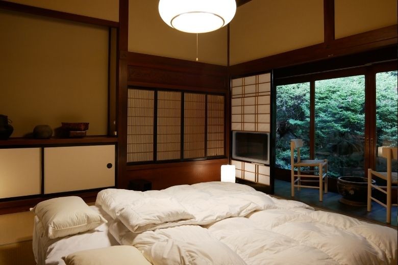 緑の見える縁側が快適な日本間、夜は布団を敷いて寝る。2階には洋室も造られている。Photo: Tobira Group