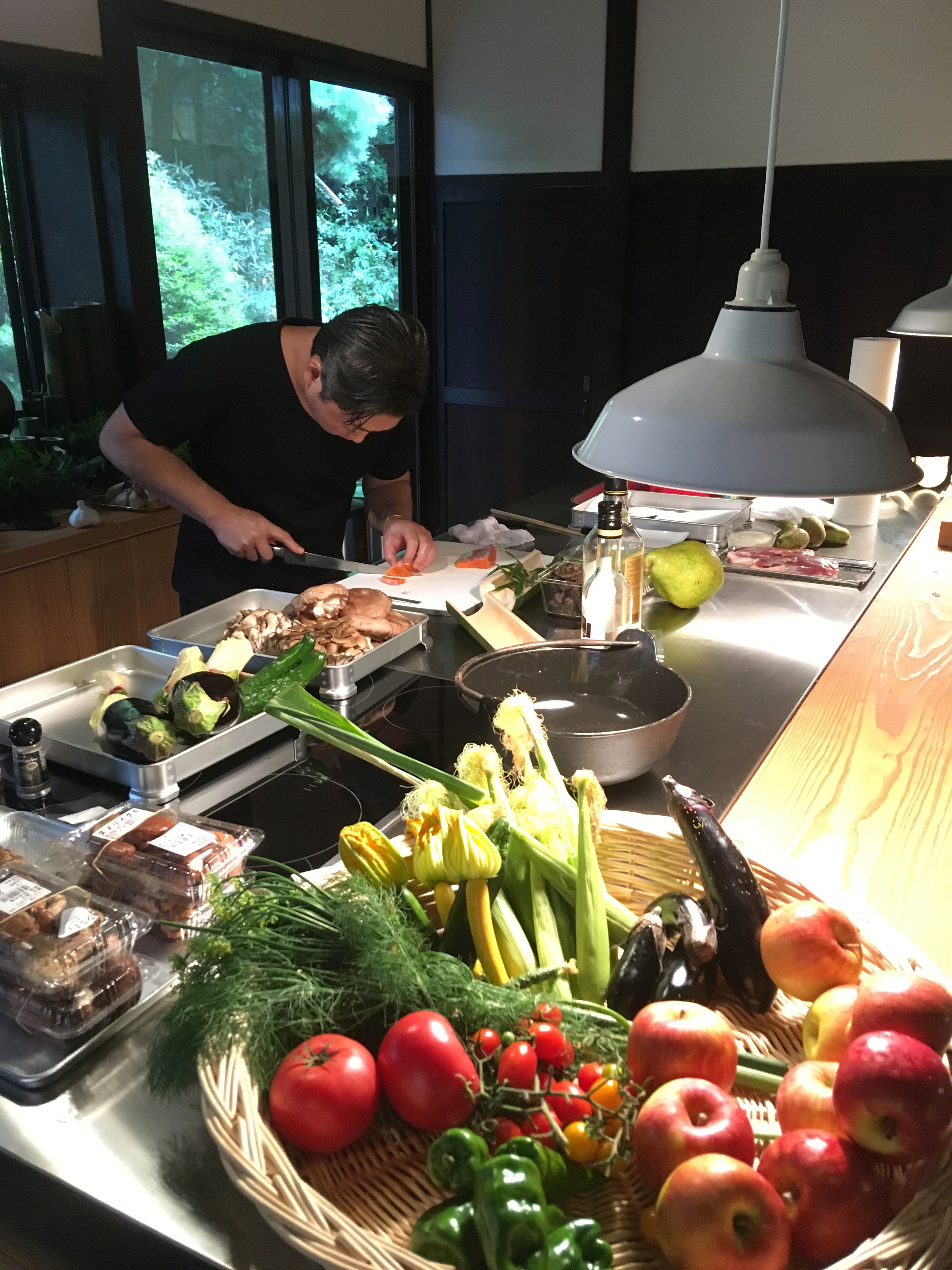 見るからにおいしそうな料理を作るシェフ、この日は扉グループの人気のナチュレフレンチ「ヒカリヤ ニシ」から統括料理長、田邉真宏が。Photo: Tobira Group