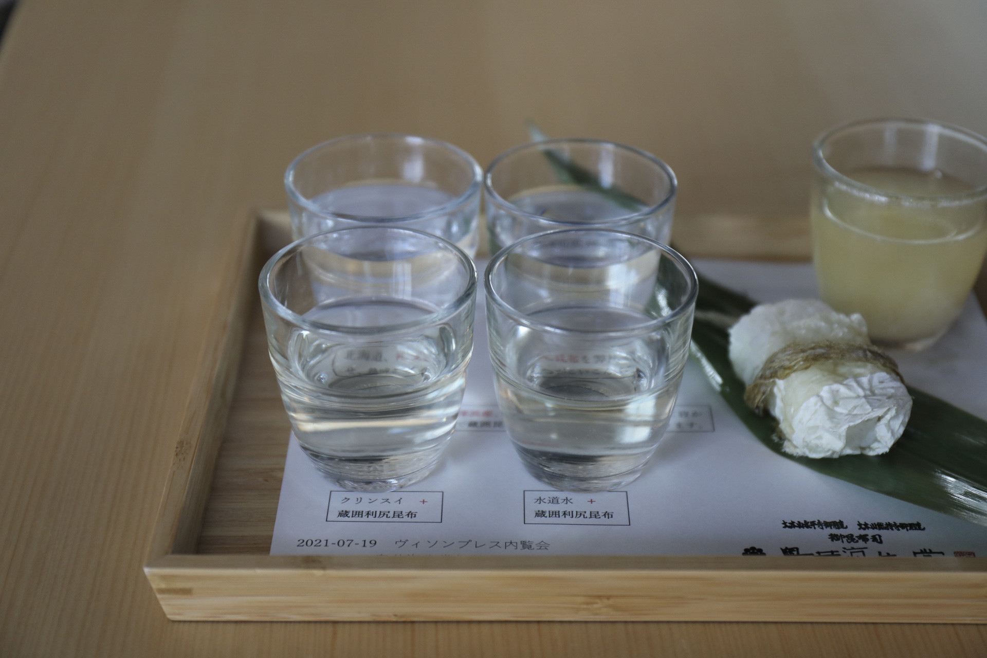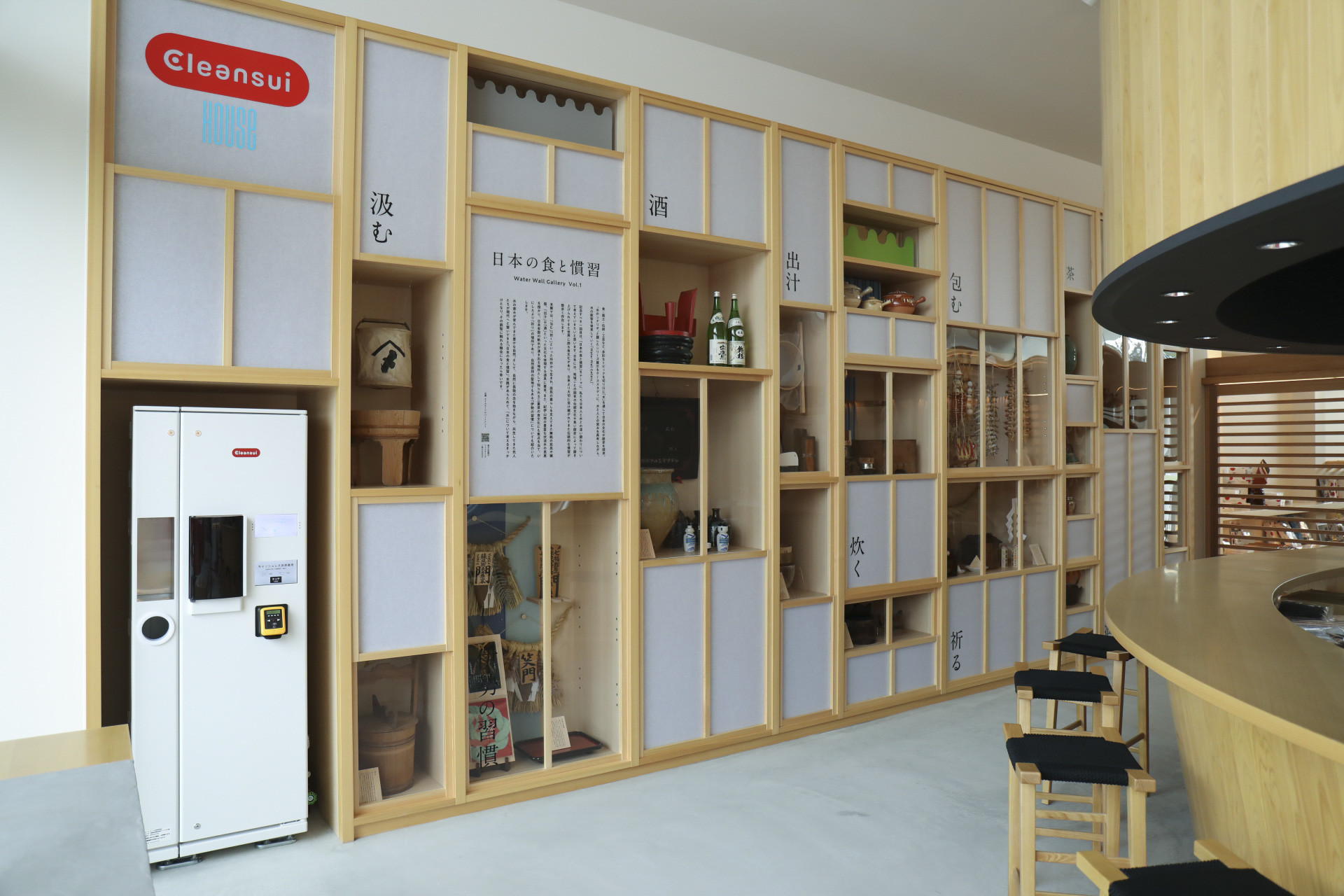 同じ建物に入る、福井の昆布の老舗、奥井海生堂とのコラボレーションで実現した「水の飲み比べ」。水道水とクリンスイを通した水、水道水とクリンスイを通した水で引いた出汁など、その味の違いに驚くはず。今後は定期的に大小さまざまなイベントを開催予定。