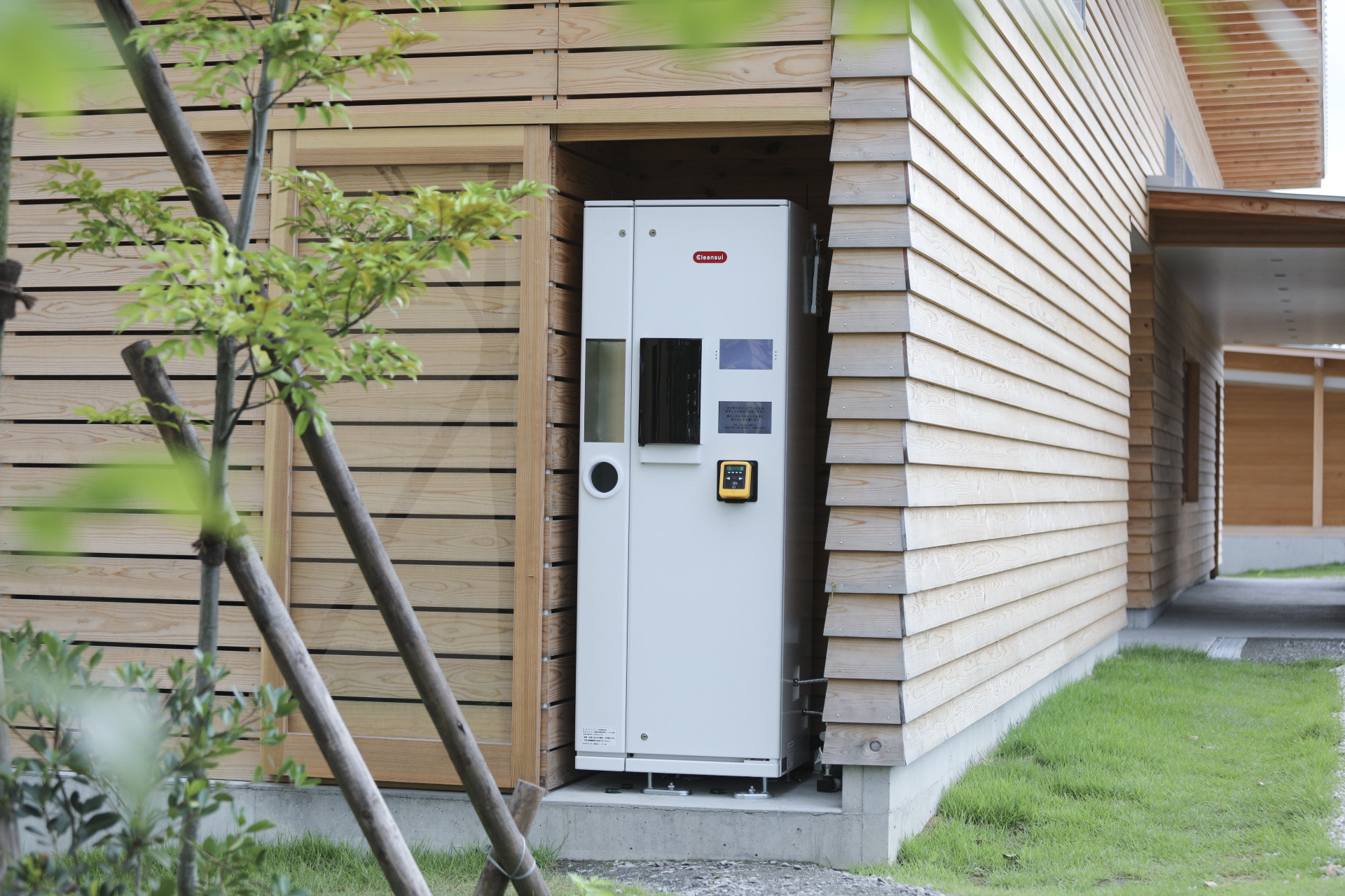 敷地内に点在するクリンスイのウォーターサーバー。お金を払ってマイボトルに注ぐシステムで、常温と冷水が選べる。 400ml ¥80