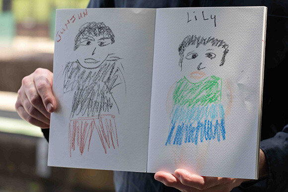 ドミニクシェフが描いたジュンジュンとリリのポートレート。