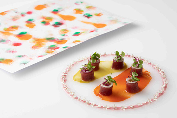 「長い料理人人生の中で、こんなふうにワクワクさせてもらったのは久しぶりのこと。自閉症の子どもたちの心は限りなくピュアで、彼らの生み出すアートの可能性は無限大です。でも、彼らの存在は意外に知られていないようです。ジュンジュンとリリーと触れ合い、親御さんたちと話す中で、彼らにいま早急に必要なことは何かを知りました。自閉症を知って、理解して、優しい眼差しで見守る。それだけで彼らの”安らぎ”に繋がるのだと。それなら自分にもできることがありそうだと思ったのです。彼らの頭の中から、心の中からあふれ出るアートを、僕もお皿の上で描いてみようと。レシピにしてみなさんにも作っていただき、レストランではコースの一皿として味わっていただき、自閉症の人たちのアートの素晴らしさに触れていただけたら、それだけでうれしいです。