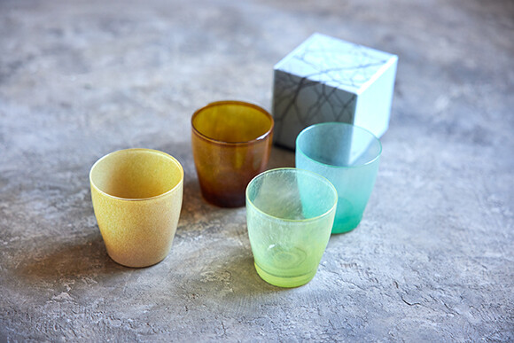 西恭平シェフ監修のコース料理には、ガラス作家の辻野剛が立ち上げた新ブランド、frescoのグラスウエアがギフトについてくる。*写真はイメージです。色の指定は不可。