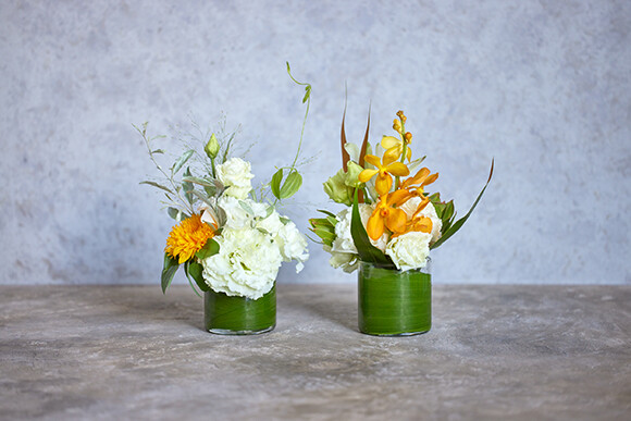 ファッションブランドのショールームの装花やさまざまなスタイリングで人気のパリ在住フラワーアーティスト「福千代」によるフラワーアレンジメントも、このケータリングサービスの特色。季節の花で、テーブルにさらなる彩りを添えてくれる。こちらもひとりひとつずつギフトとして持ち帰ることができる。*写真はイメージです。季節や入荷状況により、花材は異なる。