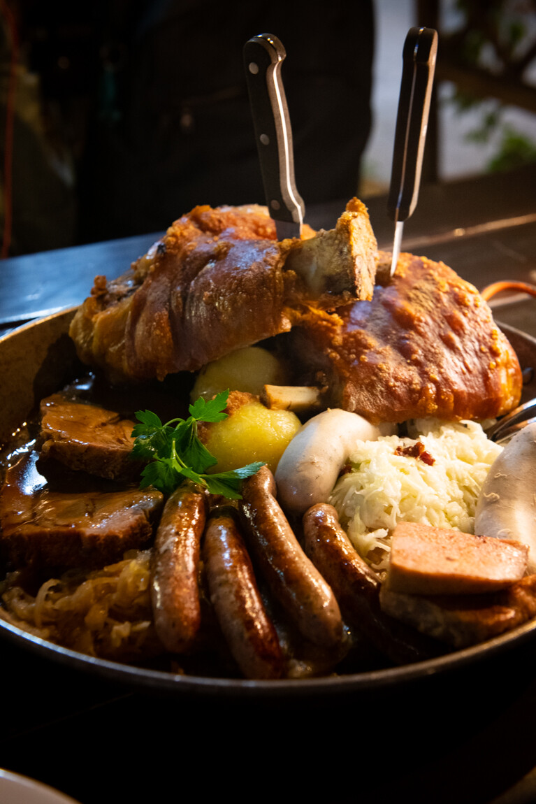 蛇足ですが、、今回ドイツで食べたものでいちばん美味しかったのが、シュバイネハクセという豚の骨付き膝肉グリル(ナイフが刺さっているやつ)でした。皮はパリパリ、中身はジューシー。旨すぎてフランスにテイクアウトしたいくらい、、。ベルリンのホフブロイハウスで食べたんですが、この料理の本場はミュンヘンだそうです。ドイツといえば豚肉料理(イメージ)。いやー、膝肉グリルを追いかけて、ミュンヘンに行ってみたい。関係各所の皆さま、どうぞ宜しくお願いします(公募)。
