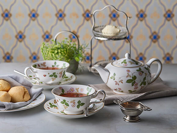 歴史あるウェッジウッドは、アイコニックなデザインを多く擁しているので、きっと誰でもどれかは目にしたり手に取ったりしたことがあるはず。スコーンとサンドイッチで楽しむ伝統的なアフタヌーンティーには、ウェッジウッドのオーセンティックなティーウェアがよく似合う。