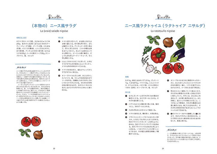 たとえば2月のレシピのひとつ、「(本物の)ニース風サラダ」。現地で親しまれるこのサラダの材料とドレッシングとは? その料理が生まれた背景や歴史とともに紹介されているのも、フランスと日本両方の食文化に精通し、大きな関心とリスペクトを抱いている著者ならでは。